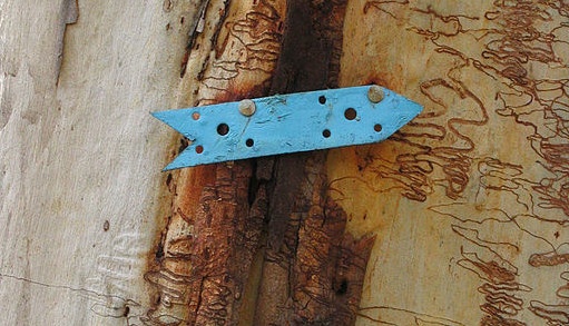 Blazes can take the form of marks on trees, stacked rock cairns, or metal signs like this one. Photo by Bluedawe.