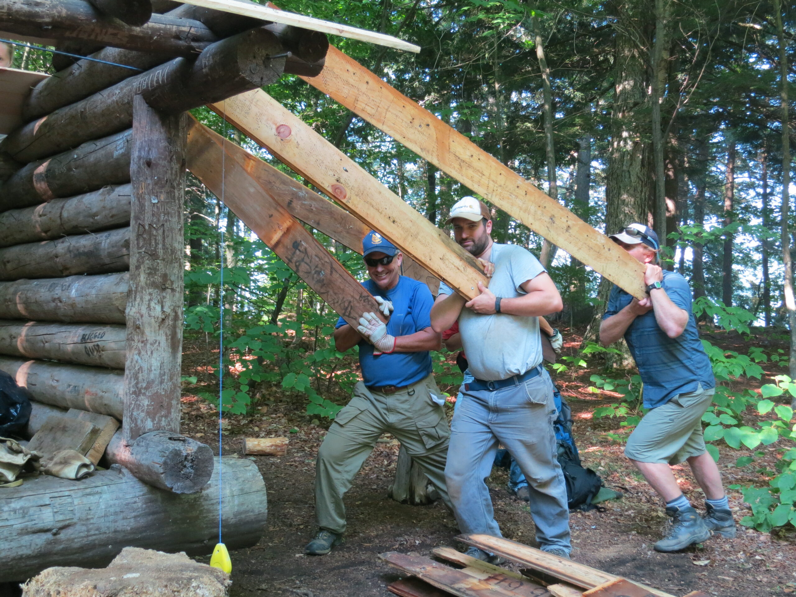 The group of 15 included two NOLS instructors and a trail specialist consultant from Snowhawk. In four days, the group helped repair a lean-to roof at Rodney Point on Long Lake, reconstructed several box privies, and restored an overgrown trail up nearby Kempshall Mountain, totaling over 300 hours of service.”