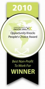 In its Annual Peoples’ Choice Best Nonprofit to Work For Awards, Opportunity Knocks invited nonprofit employees submit a brief essay on why they consider their organization to be a great place to work. Nominators could take into consideration factors that are important to them, such as quality of work/life balance, their organizations’ adherence to its mission, camaraderie of employees, unique benefits, training programs and career paths.