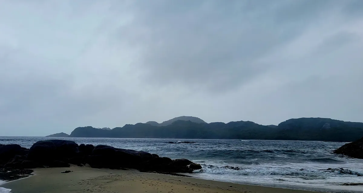 View to the beach where the HMS Wager washed ashore from our camp of Isla Byron. Photo: Steve Robitshek