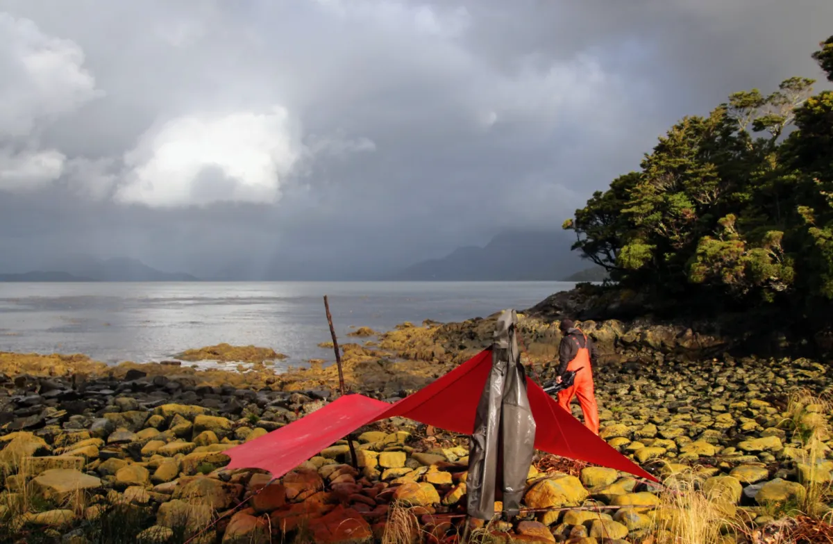We began pushing hard, and Patagonia pushed back with headwinds and current. We needed to change our situation. Discussions were had about alternative plans: forget Isla Wager, go back to Puerto Eden, go directly to Tortel. We decided to use some smaller channels which, while increasing the distance, kept us more protected and set us up to get to Islas Byron and Wager, our goal. We spent a week working our way north. Then, after one more day being pounded by high winds, rain, and a foot-high storm surge that had us trapped under our tarp for three hours, we managed to get to Isla Byron.