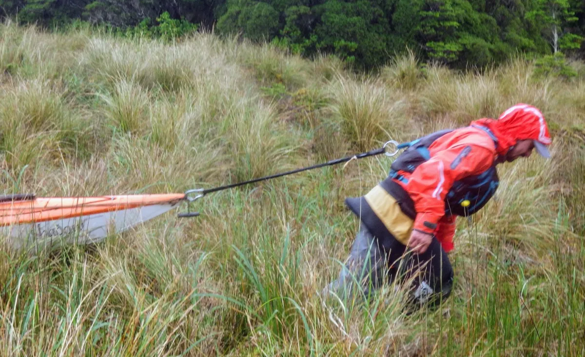 Nacho pulling his kayak through the tundra. Photo: Dave Watson