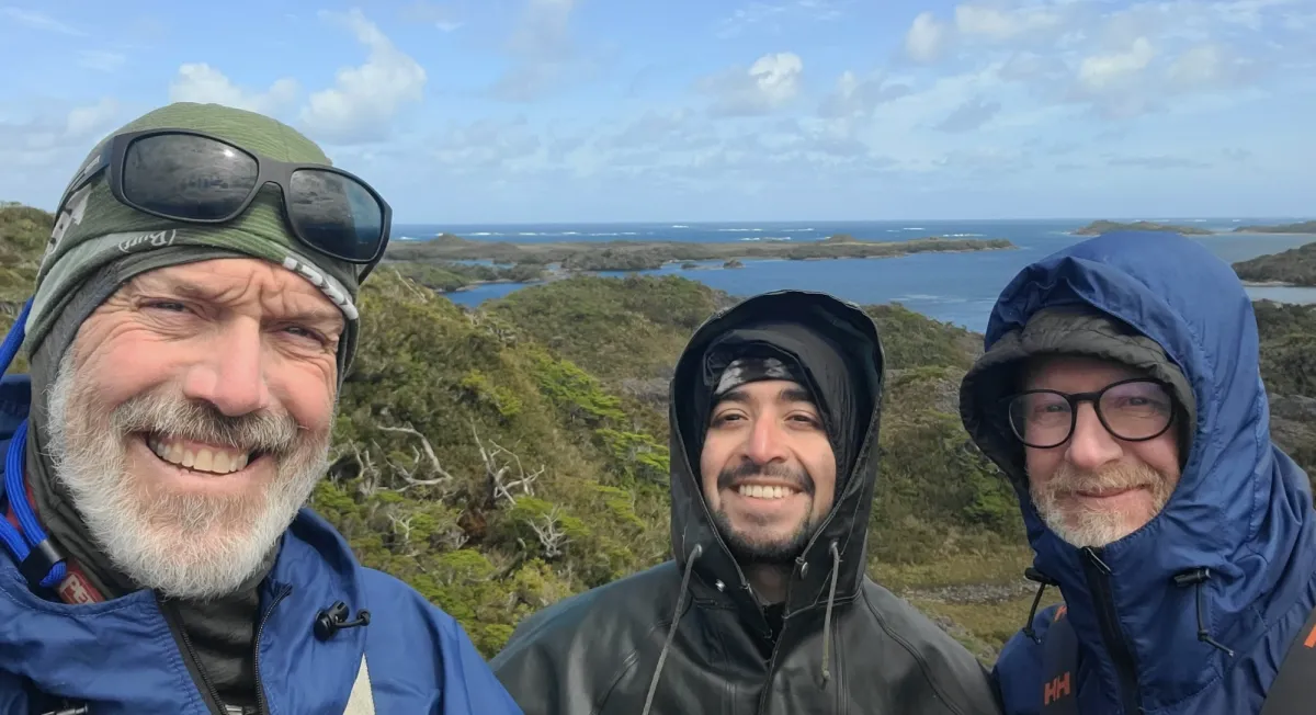 Steve, Nacho, and Dave in front of open ocean and beaches as seen from Canal Picton.