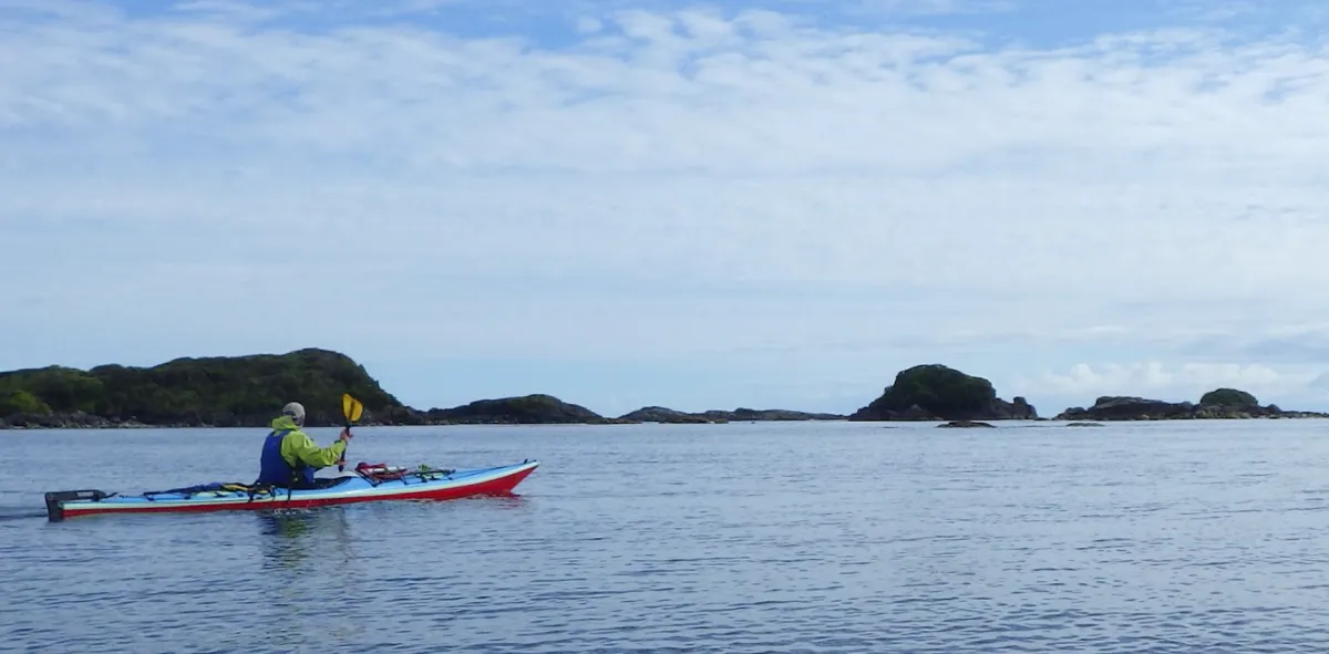 Steve paddling between some barrier islands and Isla Wager. Photo: Dave Watson
