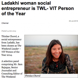 “Thinlas Chorol, a social entrepreneur from Ladakh, has been chosen as The Weekend Leader – VIT Person of the Year.”