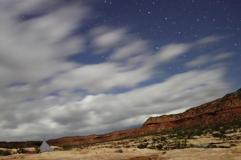 The night Tom photographed the Milky Way, he’d recruited a cohort to accompany him on a midnight foray where they spread their bags out on a slickrock bench and triple-set their alarms, prying themselves up and into the frigid canyon air at 3am to erect the tripod for an extended-lapse shot. They’d never seen the Milky Way before and in the morning when they woke, they draped their arms around each other, laughing with cantaloupe smiles and carrying spring lamb-bounce in their steps.