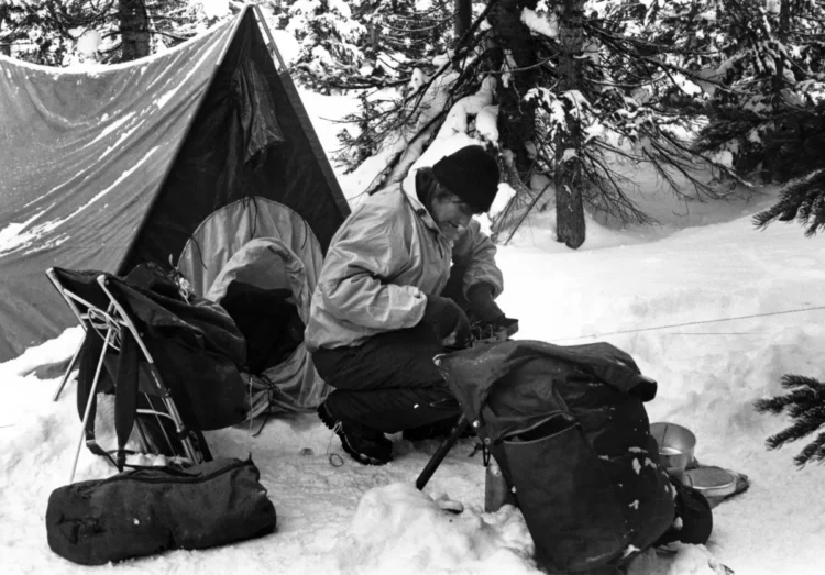 NOLS winter camping in the 1970s. It was December 1973, in the midst of a two-week winter course somewhere in the Winds. With our 70+-pound packs, we used seal skins on our wooden Army-issue skis to ascend a steep ridge. The day was clear and very cold. The snow was almost to our knees, as…
