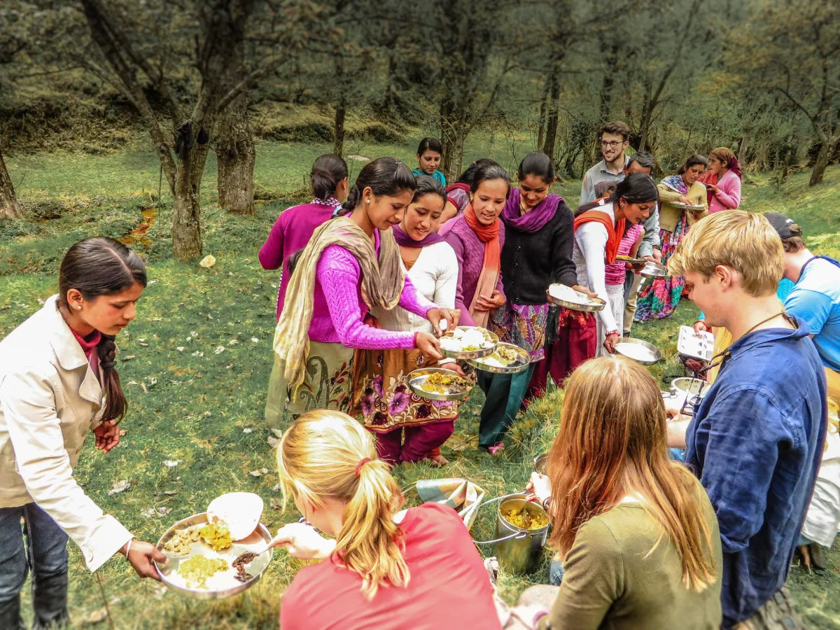 Join us for an adventure in the Indian Himalaya, where you’ll discover new challenges and gain global perspective as you travel through soaring peaks. Backpack through alpine villages and practice your conversational Hindi with local community members. Develop mountaineering skills on high-altitude glaciers or navigate whitewater rapids while rafting on the Kali River. Learn one or more technical skills—backpacking, mountaineering, or whitewater rafting—in the highest mountain chain in the world. The Himalaya is inhabited as high as 10,000 feet and sometimes higher: NOLS India courses combine the physical challenges offered by mountain terrain with a window into the culture of Kumaon communities. Here, the traditional Indian greeting, namaste, is a word worth knowing and saying properly. Whether you’re attempting a peak ascent or traveling to a high-altitude glacier to practice mountaineering skills, you’ll encounter local community members along the way. On courses with a homestay, you’ll participate in your host family’s daily life and attend classes on local ecology and history. On a NOLS India course, your engagement with communities in the Himalaya will frame and inform your wilderness experience.