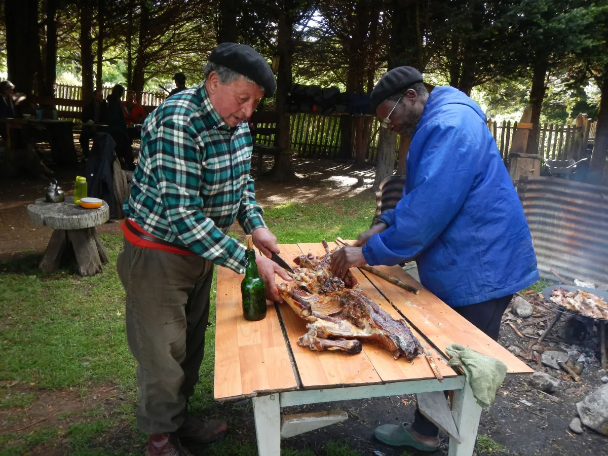 Come explore the rugged landscape, unique culture, and unpredictable weather of the Aysén and Magallanes regions of Chilean Patagonia. Whether you’re backpacking, climbing, sea kayaking, or mountaineering, you’ll begin your adventure at the NOLS Patagonia campo, or farm. Patagonia’s terrain varies widely—from steppes and temperate rainforests to alpine ecosystems and ocean fjords—and most courses travel through more than one of these distinct landscapes. From sea to summit, you’ll learn how local ranchers and settlers, known as pobladores, have adapted to live in each environment. Starting in 1990, our staff has built strong relationships with local communities through our history of exploration in remote places, working side by side with the pobladores. You’ll practice your Spanish language skills as you listen to the stories of families who have lived here for generations and interact with our in-town staff and instructors. Most courses include regular interactions with local communities, and some also include a homestay with a Chilean host family. At the end of your course, you’ll celebrate with one of our favorite traditions: cordero al palo, a feast of roasted lamb served with fried bread, potatoes, pebre, and greens from our garden. This meal honors the tradition of sharing that you’ll learn in Patagonia—it reflects the values of the people who call this isolated region of the world home.