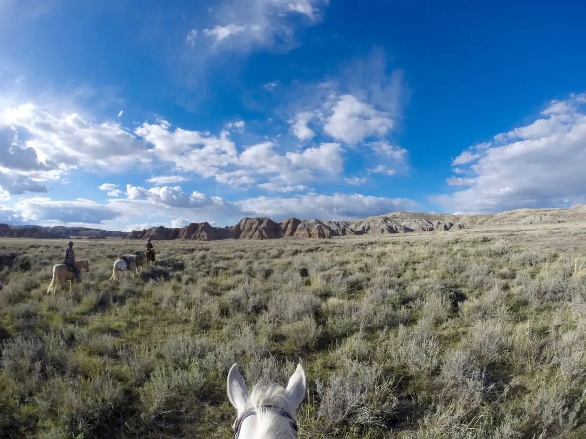 Join us at Three Peaks Ranch for a unique Western adventure: horsepacking in the rugged mountains and deserts of Wyoming. Starting at our 120-acre ranch, you’ll learn to travel and camp with horses, exploring the Red Desert, Wind River Range or Absaroka Mountains. While it’s easy to arrange for a day ride in the West, a two- or three-week pack trip is a rare opportunity to truly immerse yourself in a beautiful, remote environment. Not only will you master the basics of backcountry horse travel, you’ll also find that working with horses is a great way to develop your leadership skills. Before you head into the field, you’ll spend several days camping at the ranch where our herd of 80 horses lives, familiarizing yourself with the horses and gear you’ll rely on in the backcountry. At Three Peaks, you’ll become part of a longstanding tradition of exploration on horseback: the ranch was first homesteaded in 1886 and some of the original buildings are still in use today. Come challenge yourself to learn new skills and effective communication—with both human and equine companions—in Wyoming’s rugged mountains and sweeping deserts.