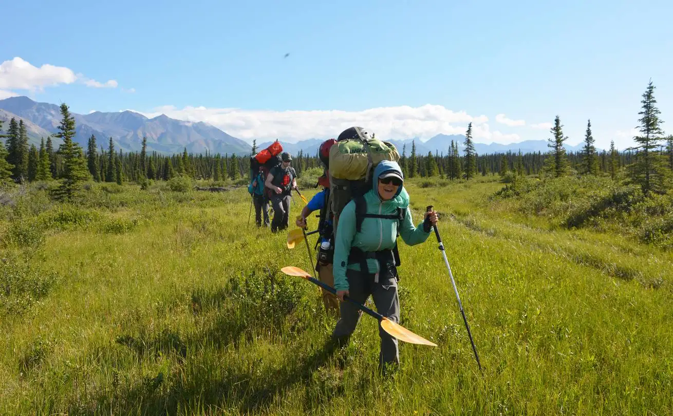 Our Talkeetna Packraft course for adults offers an introduction to all aspects of a true packraft expedition by alternating between boats and backpacks to connect alpine ecosystems, glacial rivers, low tundra, and clear mountain streams. The expedition begins by flying in a bushplane to a backcountry airstrip deep in the Talkeetna Mountains. We will focus on camping and backpacking skills as we make our way to the headwaters of the Talkeetna River, where we will transition into river mode. This low-gradient, braided river is an appropriate challenge for people totally new to packrafting as well as those with prior experience. Over several days of paddling, there should be great opportunities for wildlife, excellent riverside camping, and mountain views. Deflating our boats and changing into hiking mode again, we will leave the Talkeetna River to slowly bushwhack our way to the tundra, possibly enjoying views of Denali, before descending to Chunilna Creek, referred to by locals as Clear Creek. Our time on Clear Creek will include learning to paddle whitewater, fishing for salmon and trout, and scenic camping on gravel bars.