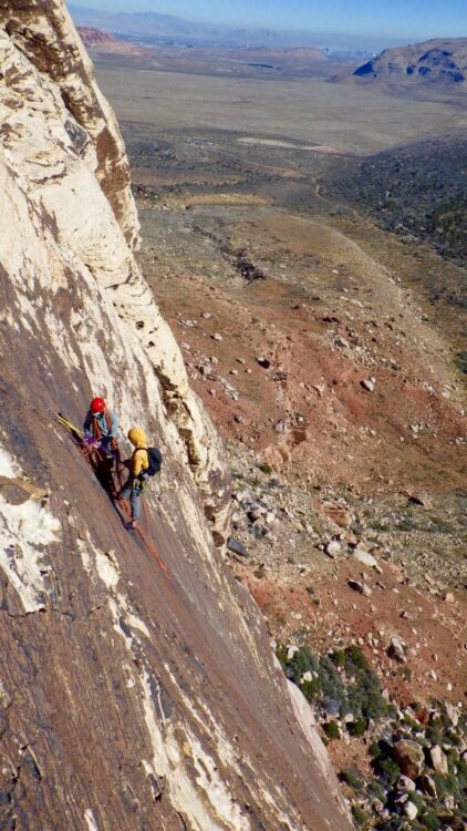 Explore educational multi-pitch climbing in Red Rocks with NOLS Rock Climbing Courses. Elevate your teaching skills in this breathtaking desert setting.